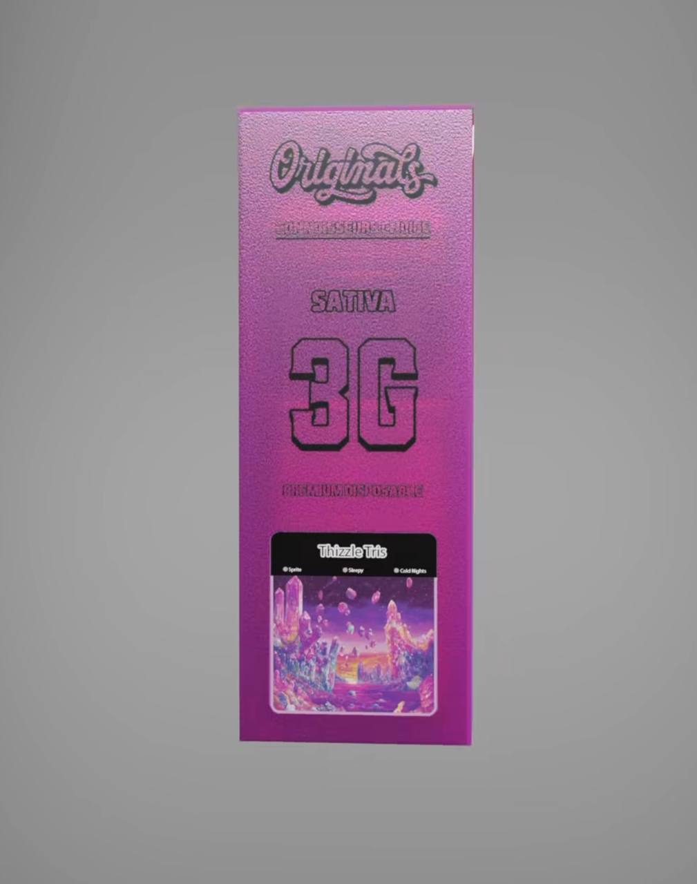 Turn up your vape experience with the bold and vibrant Originals OG Thizzle Tris Disposable – a powerhouse of flavor, potency, and convenience packed into one sleek, high-capacity device. Designed for cannabis connoisseurs who crave rich terpene profiles and hard-hitting effects, this disposable brings together classic OG strength with a flavor-packed twist.